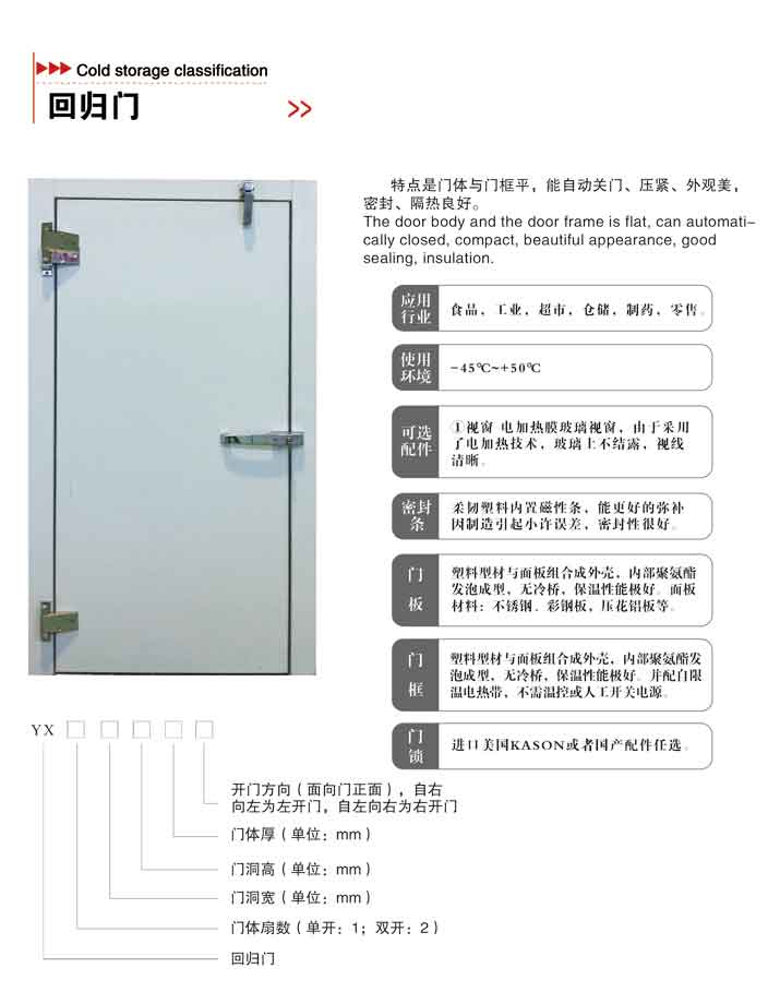 特点是门体与门框平,能自动关门、压紧、外观美,密封、隔热良好。
